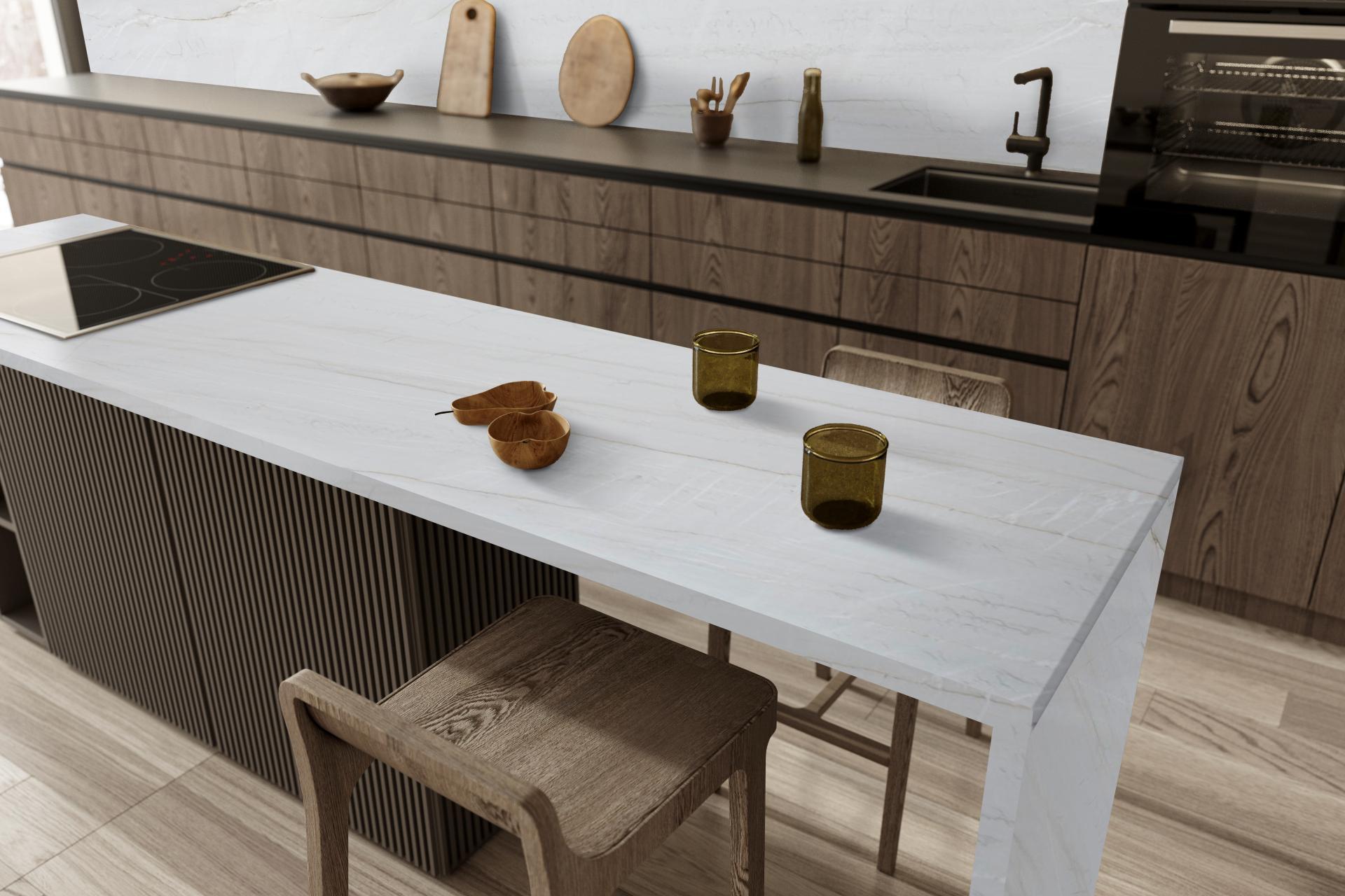 המשטח אינו דורש איטום תקופתי, קל לתחזוקה ומהווה פתרון פרקטי למטבחים המשלב יוקרה עם עמידות גבוהה.